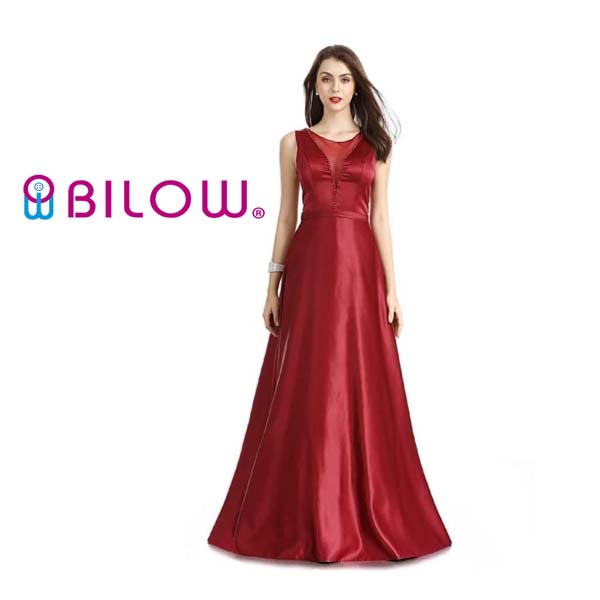Vestido de noche en color vino con transparencia en el escote, súper recomendado para eventos de graduación.