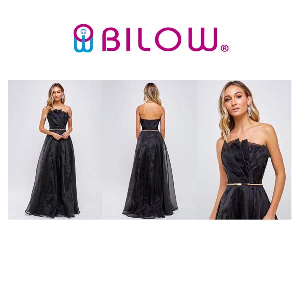 Vestido de noche color negro strapple, cuenta con el cinto dorado lo cual lo hace ser un vestido muy elegante.