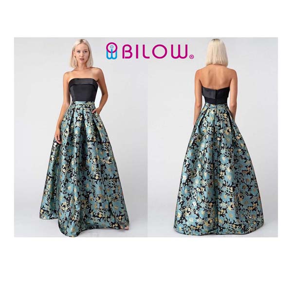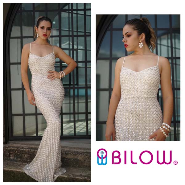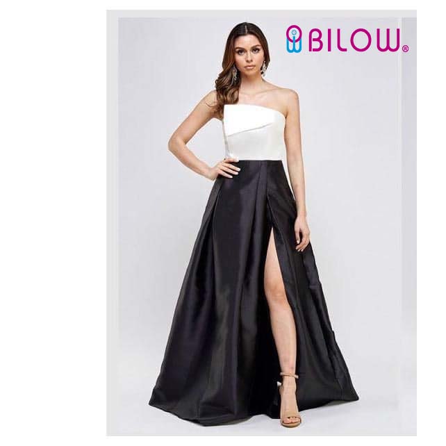 Vestido de noche color negro con strapple en blanco, hace ser un vestido muy elegante.